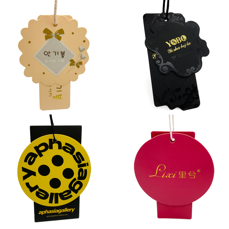 Prezzo a buon mercato OEM Design stampa sacchetto di carta bottone etichette altalena per abbigliamento vestiti